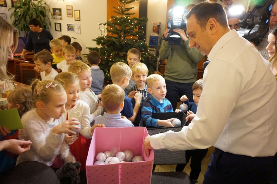 "Dla dzieci choinka to radość, frajda z zawieszania bombek, łańcuchów, ozdób choć przyznaję, że i ja świetnie się bawiłem. Ale to dlatego, że miałem takich pomocników" - stwierdził wiceprezydent Trela.