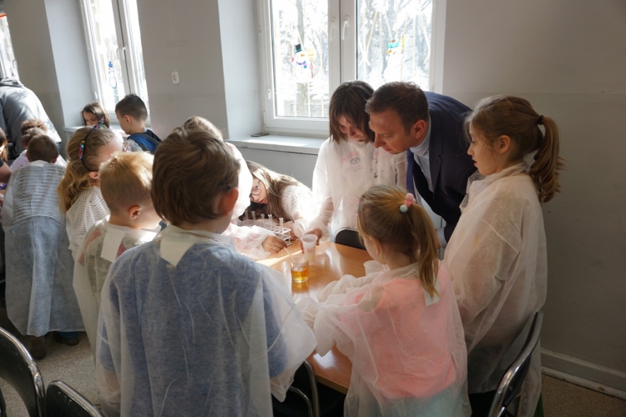 W poniedziałek najmłodsi łodzianie uczestniczyli w zajęciach, podczas których nauczyciele chemii prezentowali ciekawe i bezpieczne doświadczenia chemiczne. Wspólnie z dziećmi doświadczeniom przyglądał się Wiceprezydent Miasta Łodzi Tomasz Trela.