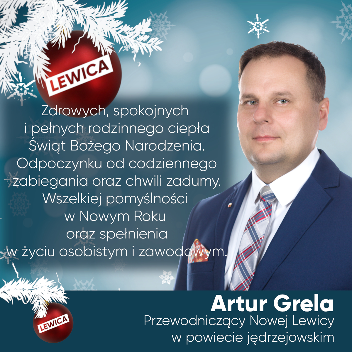 Zdrowych, spokojnych i pełnych rodzinnego ciepła Świąt Bożego Narodzenia. Odpoczynku od codziennego zabiegania oraz chwili zadumy. Wszelkiej pomyślności w Nowym Roku oraz spełnienia ...